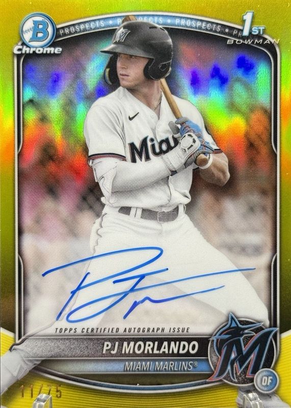 PJ Morlando 2025 Bowman Chrome Yellow Refractor Auto #/75 1st RC CPA-PM Marlins