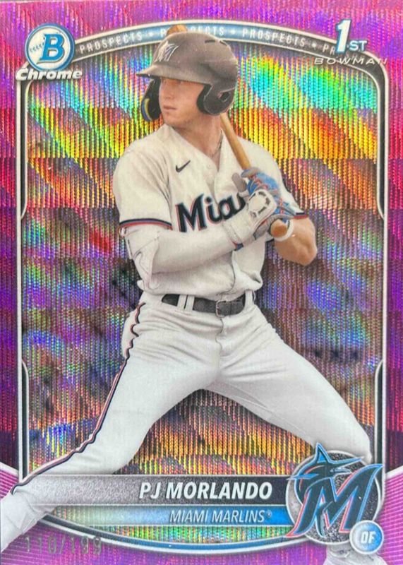 2025 Bowman PJ Morlando Chrome Fuchsia Wave Refractor 1st Prospect #/199 Marlins