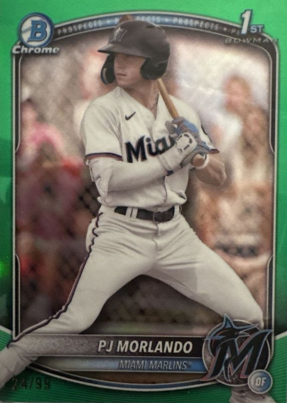 2025 Bowman PJ MORLANDO 1st Chrome GREEN Refractor /99 - Miami Marlins BCP-91