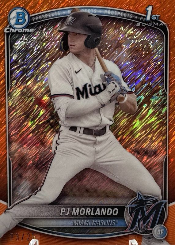 PJ Morlando 2025 Bowman #BCP-91 Chrome Prospects - Orange Shimmer Refractor /25 (1st) RAW Price Guide