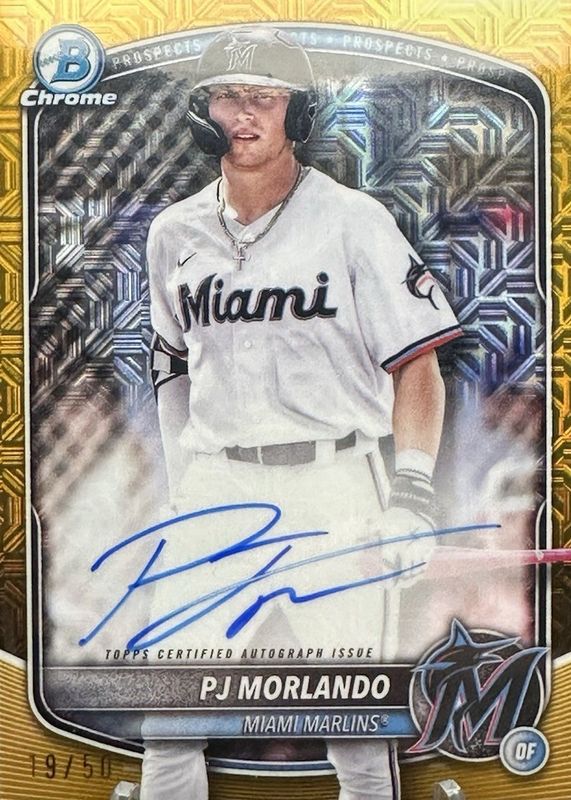 2025 Bowman Chrome #BMA-PM PJ Morlando Gold Mojo Refractor /50 Auto Marlins