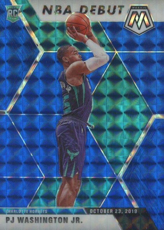 The PJ Washington Jr. 2019 Mosaic #278 NBA Debut - Blue /99 Rookie card in Raw condition has not changed in price in the last 30 days and was last sold for $4.99 .