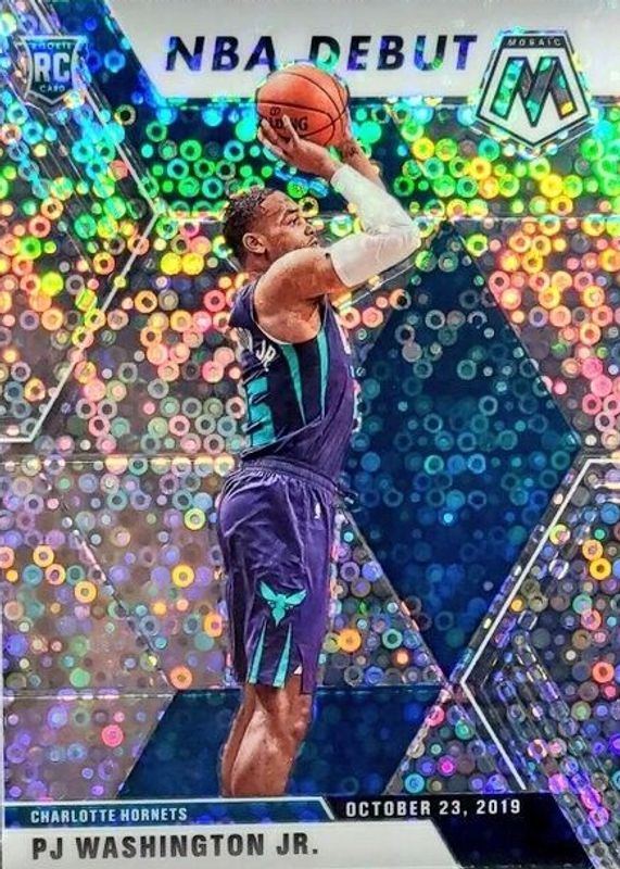 The PJ Washington Jr. 2019 Mosaic #278 NBA Debut - Fast Break Rookie card in Raw condition has not changed in price in the last 30 days and was last sold for $1.40 .