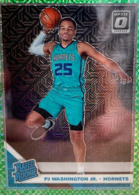 The PJ Washington Jr. 2019 Optic #152 Choice Dragon /(SSP) Rookie card in Raw condition has not changed in price in the last 30 days and was last sold for $74.99 .