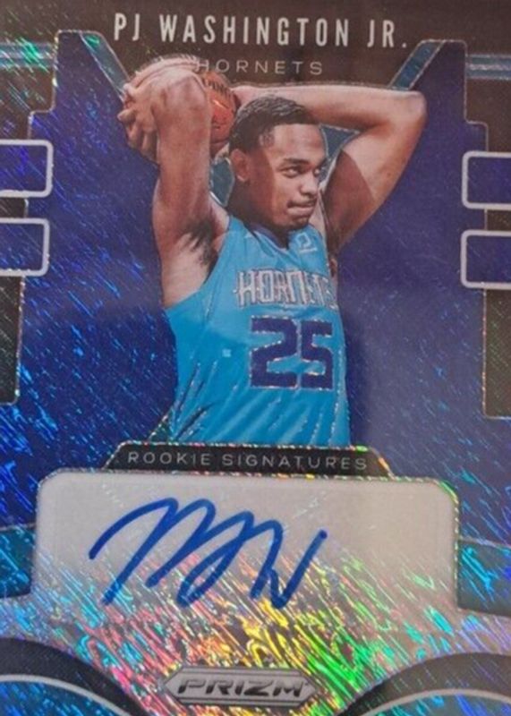 The PJ Washington Jr. 2019 Prizm #RS-PJW Rookie Signatures - FOTL Blue Shimmer card in Raw condition has not changed in price in the last 30 days and was last sold for $15.50 .