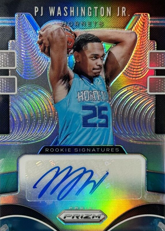 The PJ Washington Jr. 2019 Prizm #RS-PJW Rookie Signatures - Silver card in Raw condition has not changed in price in the last 30 days and was last sold for $2.93 .