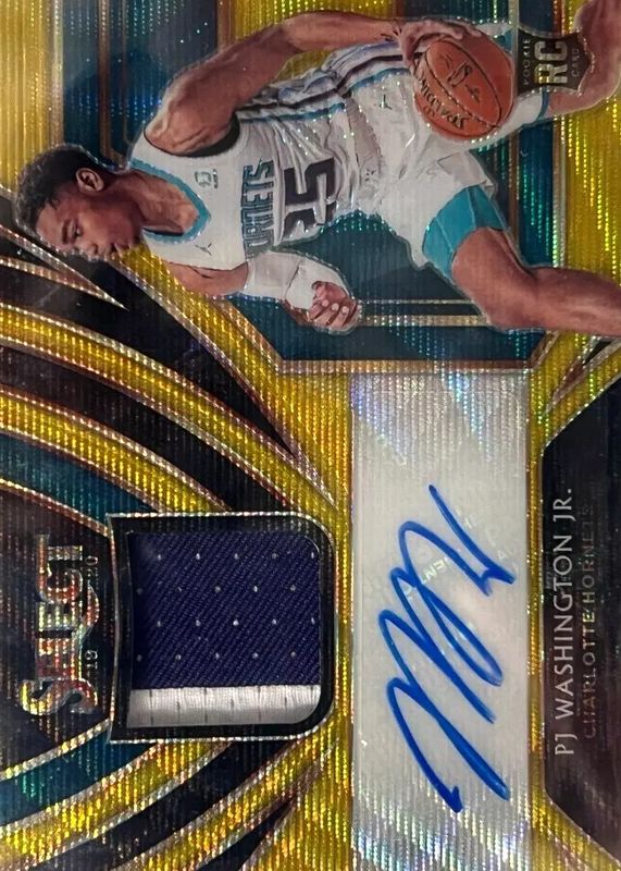 The PJ Washington Jr. 2019 Select #RJA-PJW Rookie Jersey Autographs - Gold Wave card in Raw condition has not changed in price in the last 30 days and was last sold for $39.00 .