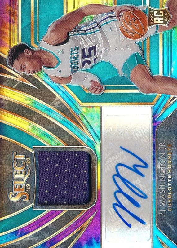 The PJ Washington Jr. 2019 Select #RJA-PJW Rookie Jersey Autographs - Tie-Dye /25 card in Raw condition has not changed in price in the last 30 days and was last sold for $28.05 .