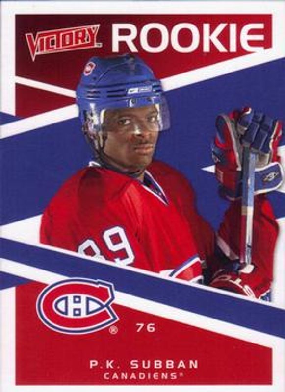 The PK Subban 2010 Upper Deck Victory #228 Base Rookie card is 1 of 8 PK Subban's card variations in the 2010 Upper Deck Victory set being tracked by Sports Card Investor, including Black, Gold, Red, Printing Plates Black /1, and Printing Plates Cyan /1.