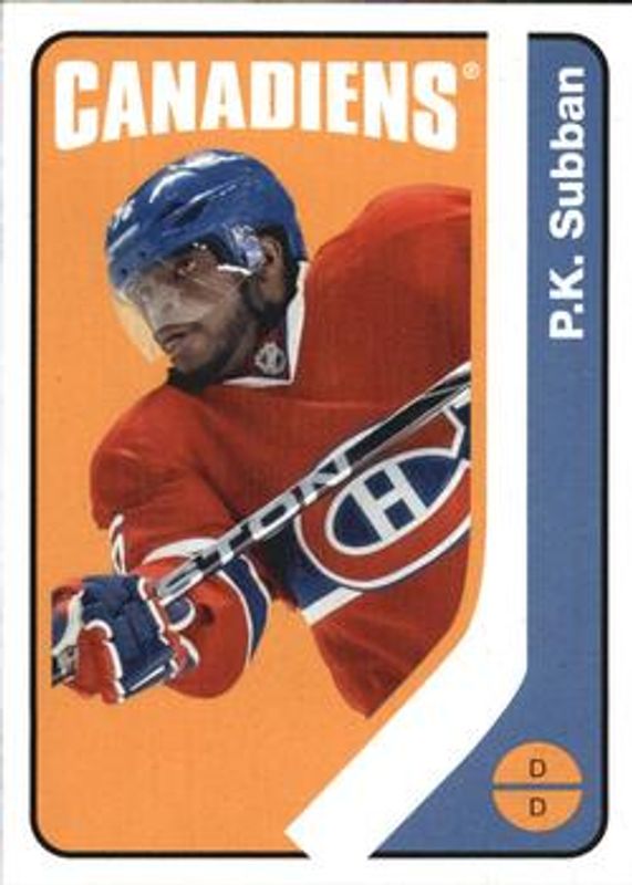 The PK Subban 2014 O-Pee-Chee #9 Retro card is 1 of 10 PK Subban's card variations in the 2014 O-Pee-Chee set being tracked by Sports Card Investor, including Base, Rainbow, Red, Retro Blank Backs, and Black Rainbow /100.