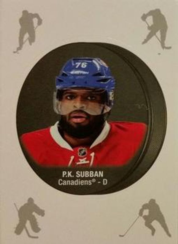The PK Subban 2016 O-Pee-Chee #16 Puck Stickers card is 1 of 9 PK Subban's card variations in the 2016 O-Pee-Chee set being tracked by Sports Card Investor, including Base, Rainbow Foil, Retro, Retro Blank Back, and Black Rainbow Foil /100.