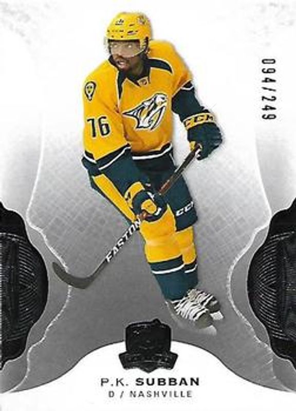 The PK Subban 2016 Upper Deck The Cup #55 Base /249 card is 1 of 16 PK Subban's card variations in the 2016 Upper Deck The Cup set being tracked by Sports Card Investor, including Gold Patch /24, Gold Spectrum /12, Red Tag /8, Green Button /3, and Black Foil /1.