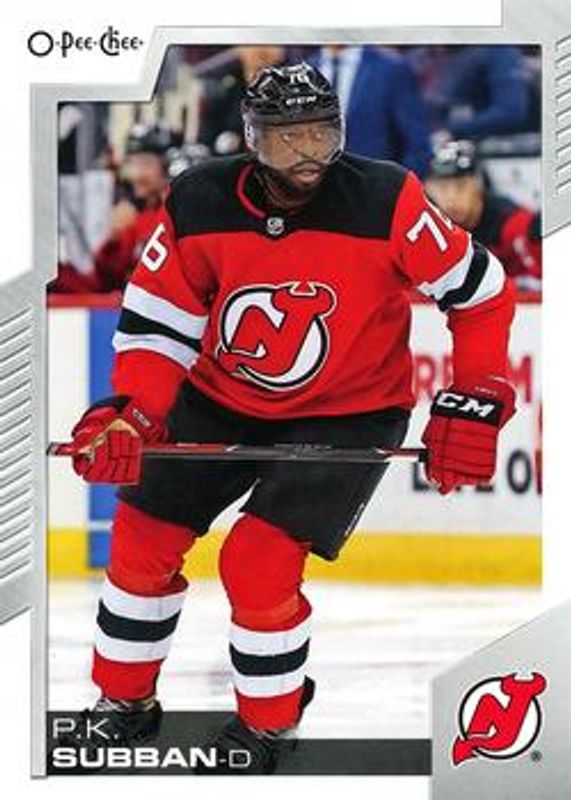 The PK Subban 2020 O-Pee-Chee #47 Base card is 1 of 8 PK Subban's card variations in the 2020 O-Pee-Chee set being tracked by Sports Card Investor, including Blue, Red, Retro, Retro Blank Back, and Retro Black /100.