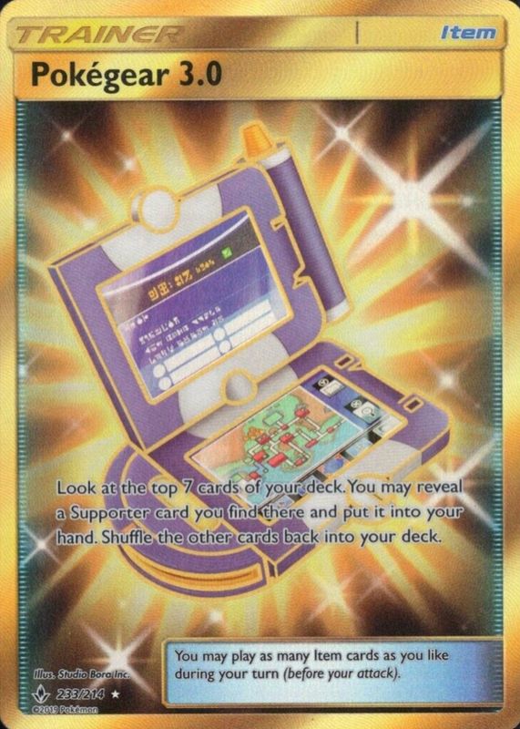 The Pokegear 3.0 2019 Sun & Moon: Unbroken Bonds #233/214 Holo (Secret) card in Raw TCG (Near Mint) condition has moved down -$3.06 (-5.5%) in the last 30 days and was last sold for $52.50 .