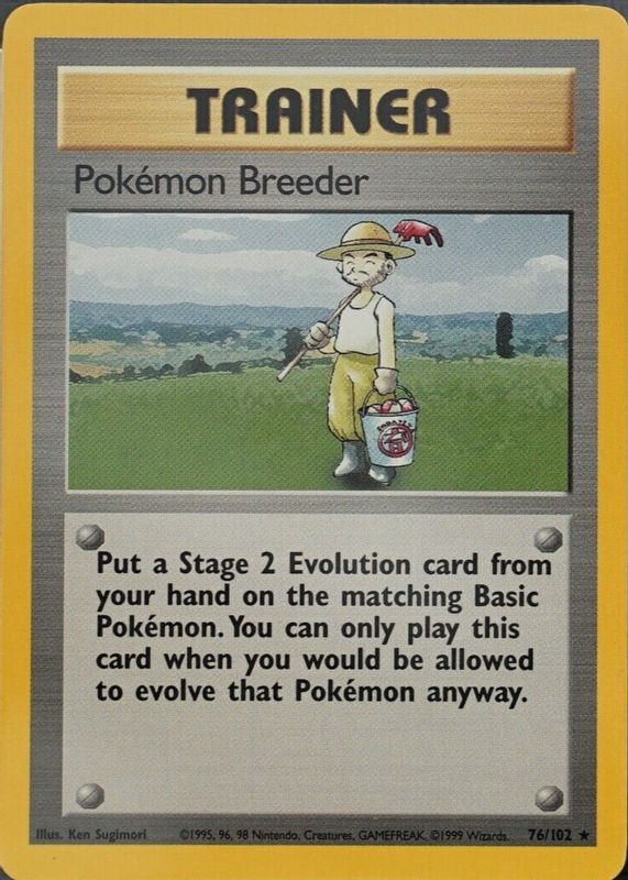 The Pokemon Breeder 1999 Pokemon Game #76 Unlimited card in Raw TCG (Heavily Played) condition has moved down -$0.20 (-5.1%) in the last 30 days and was last sold for $3.70 .