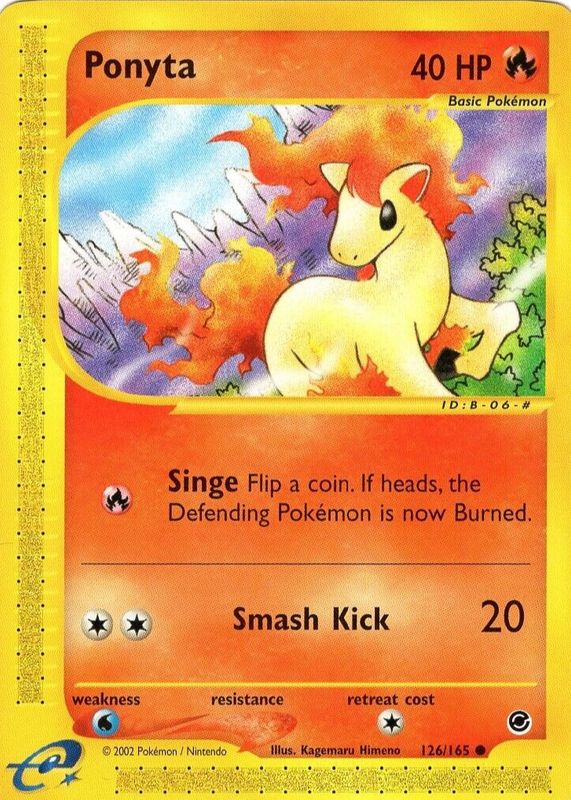 The Ponyta 2002 Expedition #126/165 Base card in Raw TCG (Near Mint) condition has moved up $0.90 (+22.0%) in the last 30 days and was last sold for $5.00 .