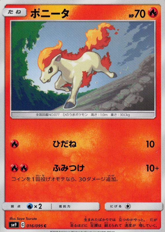 Ponyta 2018 Japanese Sun & Moon: Tag Bolt #016/095 Base RAW TCG (LIGHTLY PLAYED) Price Guide