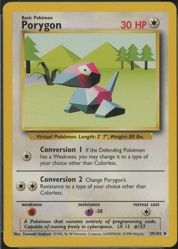 Pokemon TCG - Porygon - 39/102 - Unlimited Base Set - NM Uncommon (1999)