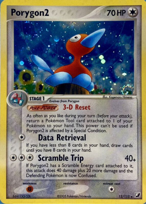 The Porygon2 2005 EX: Unseen Forces #012/115 Holo card in Raw TCG (Near Mint) condition has moved down -$17.33 (-53.6%) in the last 30 days and was last sold for $14.99 .