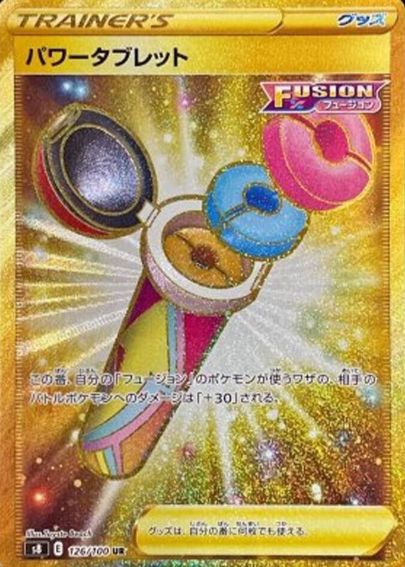 The Power Tablet 2021 Japanese Sword & Shield: Fusion Arts #126/100 Ultra Rare card in Raw TCG (Near Mint) condition has not changed in price in the last 30 days and was last sold for $5.39 .
