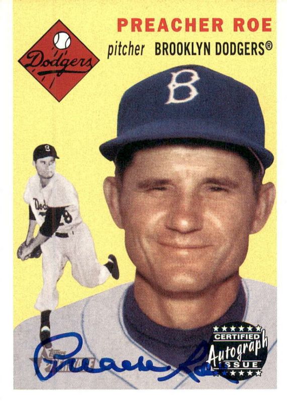 This card is 1 of 2 Preacher Roe's card variations in the 2003 Topps Heritage set being tracked by Sports Card Investor, including Real One Autographs - Red Ink /54.