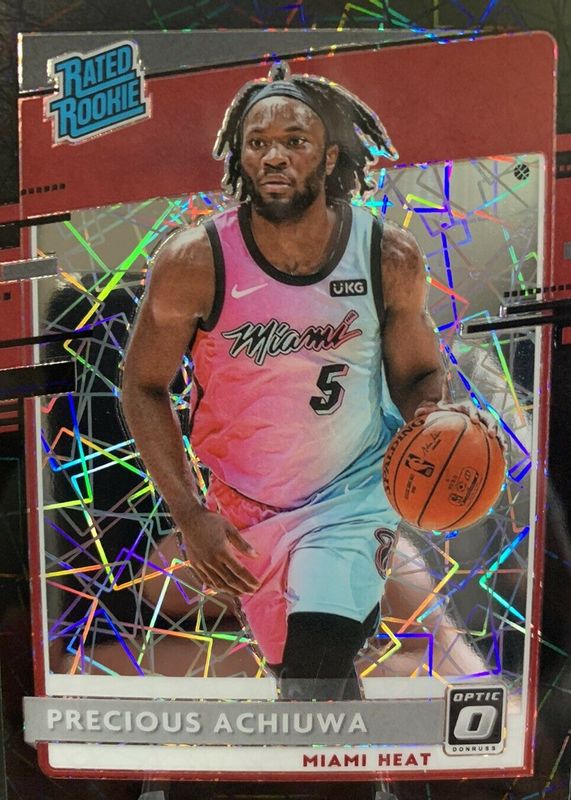 This card is 1 of 45 Precious Achiuwa's card variations in the 2020 Optic set being tracked by Sports Card Investor, including Base, Blue Pulsar, Blue Velocity, Checkerboard, and Choice.