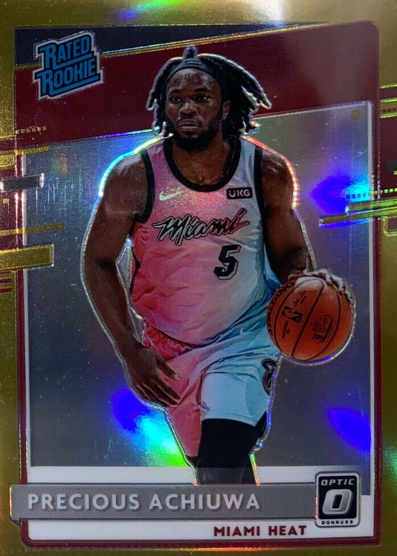 The Precious Achiuwa 2020 Optic #170 Gold /10 Rookie card in Raw condition has not changed in price in the last 30 days and was last sold for $20.00 .