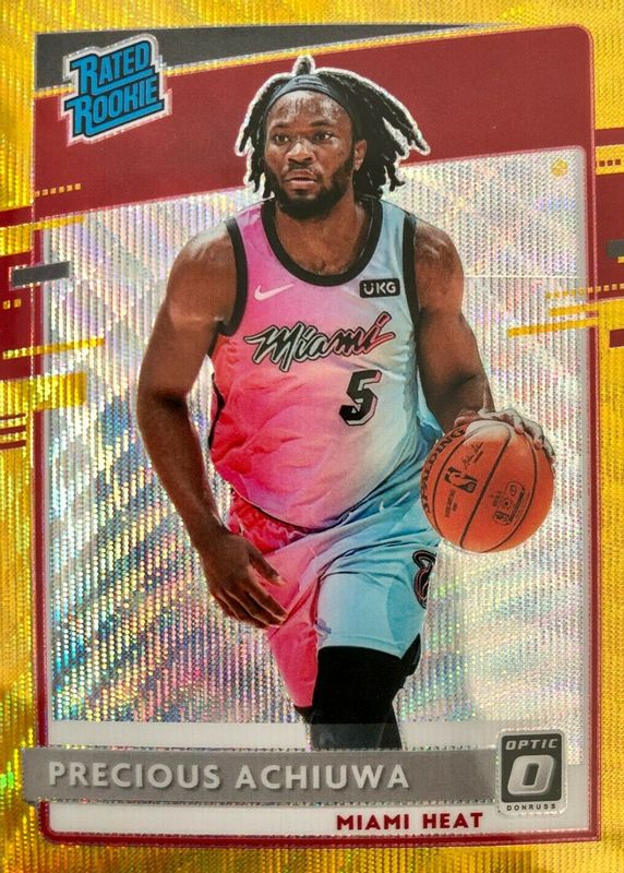The Precious Achiuwa 2020 Optic #170 Gold Wave Rookie card in Raw condition has not changed in price in the last 30 days and was last sold for $0.99 .
