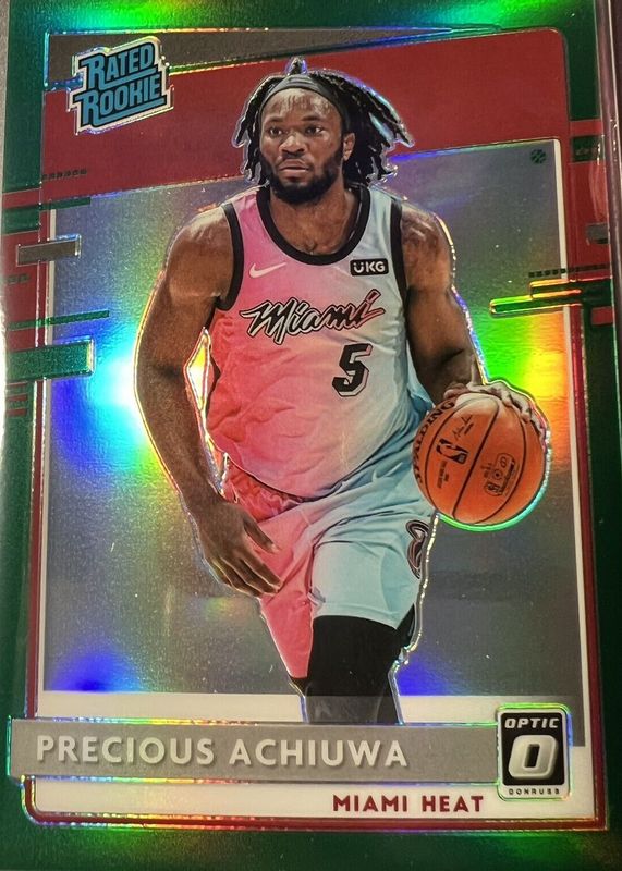 The Precious Achiuwa 2020 Optic #170 Green /5 Rookie card in Raw condition has not changed in price in the last 30 days and was last sold for $177.50 .