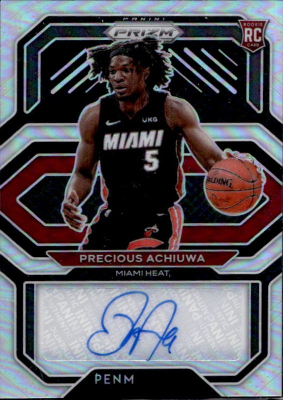 The Precious Achiuwa 2020 Prizm #RP-PAH Rookie Penmanship - Silver card is 1 of 76 Precious Achiuwa's card variations in the 2020 Prizm set being tracked by Sports Card Investor, including Base, Choice Blue Yellow Green, Fast Break, Green, and Green Ice.
