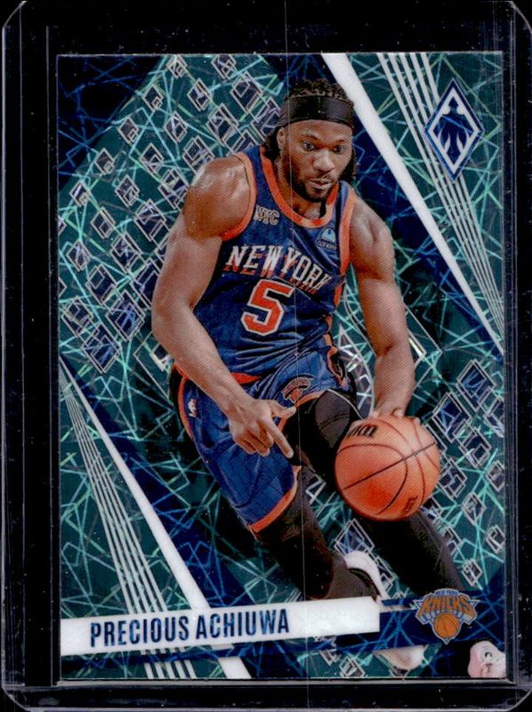 The Precious Achiuwa 2023 Phoenix #154 Teal Lazer card is 1 of 59 Precious Achiuwa's card variations in the 2023 Phoenix set being tracked by Sports Card Investor, including Base, Blue Ice, Color Burst, Dream Weaver, and Hieroglyphs.