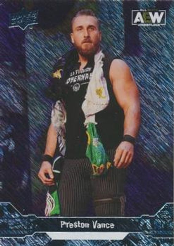 The Preston Vance 2023 Upper Deck AEW #15 Rampage card is 1 of 45 Preston Vance's card variations in the 2023 Upper Deck AEW set being tracked by Sports Card Investor, including #80 Base, #15 Base, #15 Clear Cut, #80 Clear Cut, and #15 Diamond Plate.