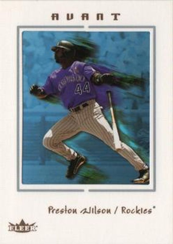 The Preston Wilson 2003 Fleer Avant #3 Base /799 card is 1 of 2 Preston Wilson's card variations in the 2003 Fleer Avant set being tracked by Sports Card Investor, including Black & White /199.