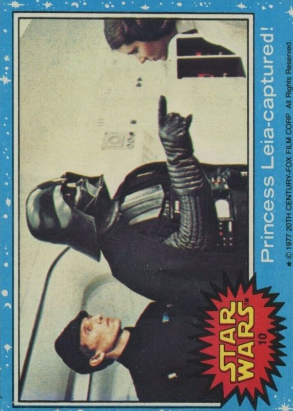 The Princess Leia - Captured! 1977 Topps #10 Base card in PSA 8 condition has moved down -$17.49 (-20.2%) in the last 30 days and was last sold for $69.00 .