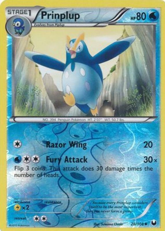 2012 TCG Prinplup - 28/108 - Reverse Holo Rare English Pokemon Dark Explorers