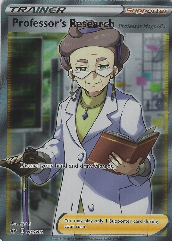 The Professor's Research 2020 Sword & Shield #201/202 Holo (Full Art) card in Raw TCG (Near Mint) condition has moved up $0.97 (+19.9%) in the last 30 days and was last sold for $5.84 .