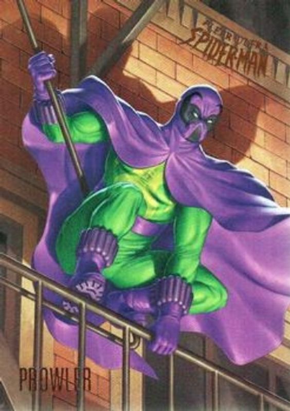 The Prowler 2017 Fleer Ultra Spider-Man #92 Base card is 1 of 26 Prowler's card variations in the 2017 Fleer Ultra Spider-Man set being tracked by Sports Card Investor, including Silver Web Foil, Gold Web Foil Autographs /49, Printing Plate Black /1, Printing Plate Cyan /1, and Printing Plate Magenta /1.