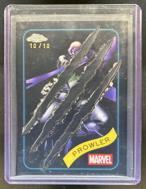 The Prowler 2025 Topps Chrome #13 Clawed Chrome Black Refractor /10 card is 1 of 23 Prowler's card variations in the 2025 Topps Chrome set being tracked by Sports Card Investor, including Base, Refractor, Yellow Lava Refractor, Spider Web Refractor /399, and Blue Refractor /299.