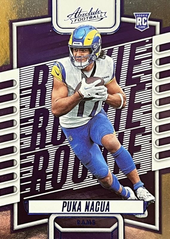 The Puka Nacua 2023 Absolute #189 Blue Rookie card in Raw condition has moved up $1.00 (+80.0%) in the last 30 days and was last sold for $2.25 .