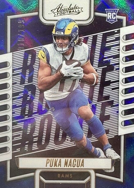 The Puka Nacua 2023 Absolute #189 Blue Diamonds /199 Rookie card in Raw condition has not changed in price in the last 30 days and was last sold for $30.00 .