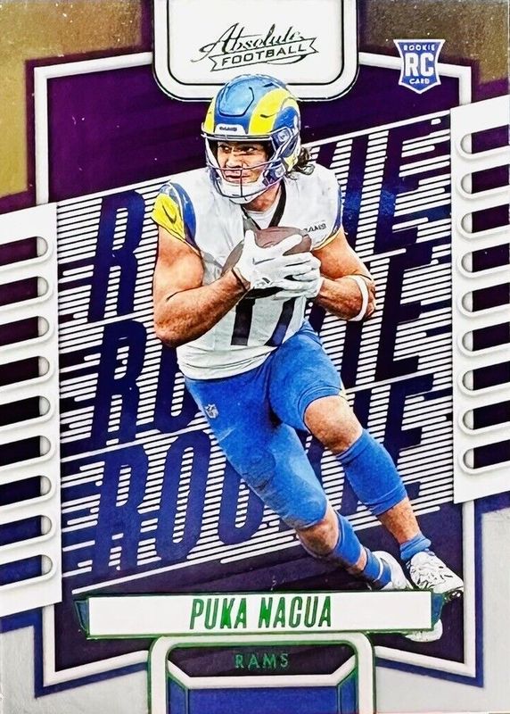 The Puka Nacua 2023 Absolute #189 Green Rookie card in Raw condition has moved up $4.01 (+405%) in the last 30 days and was last sold for $5.00 .