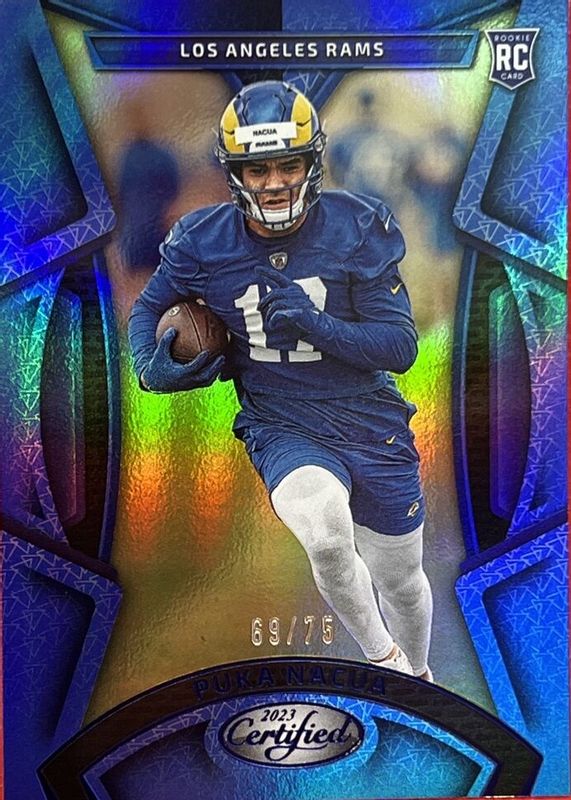 2023 Panini Certified Puka Nacua Rookie Mirror Blue 63/75 No. 143 Rams