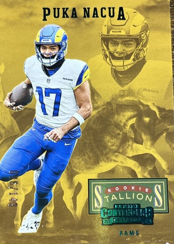 The Puka Nacua 2023 Contenders #19 Rookie Stallions - Teal /149 card in Raw condition has not changed in price in the last 30 days and was last sold for $8.75 .
