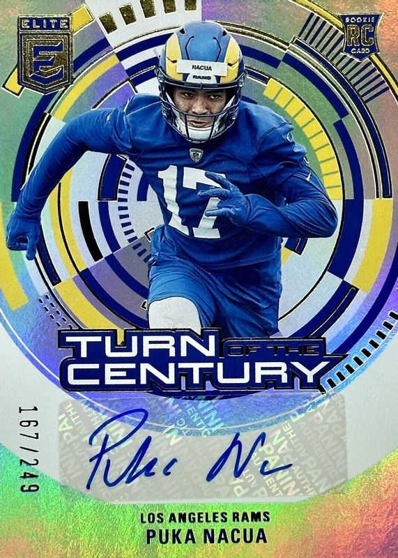 The Puka Nacua 2023 Elite #TC-PUK Turn of the Century Autographs /249 Rookie card in Raw condition has not changed in price in the last 30 days and was last sold for $65.00 .