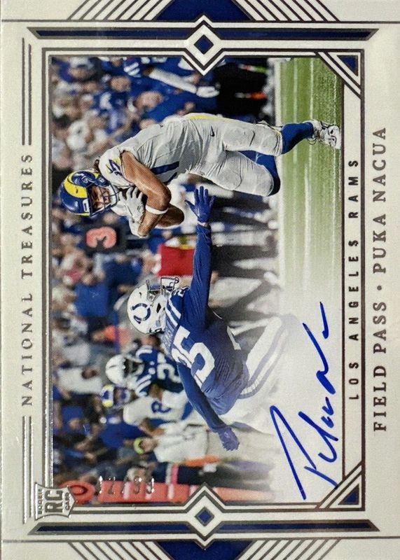 The Puka Nacua 2023 National Treasures #FP-PN Rookie Signatures Field Pass /99 card in Raw condition has not changed in price in the last 30 days and was last sold for $132.50 .