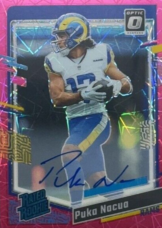 Best Prices Available For Sale of Puka Nacua 2023 Optic #238 Rated Rookie Autographs - Pink Velocity /50