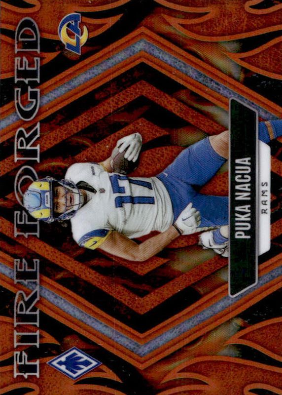The Puka Nacua 2023 Phoenix #FF-8 Fire Forged - Orange /99 Rookie card in Raw condition has not changed in price in the last 30 days and was last sold for $5.24 .
