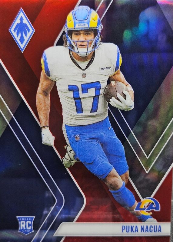 The Puka Nacua 2023 Phoenix #200 Red /250 Rookie card in Raw condition has moved up $6.51 (+658%) in the last 30 days and was last sold for $7.50 .