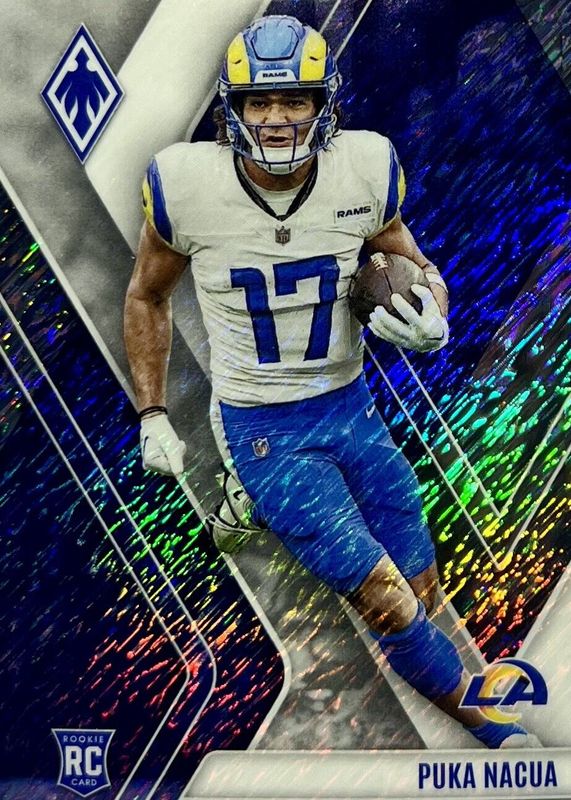 This card is 1 of 59 Puka Nacua's card variations in the 2023 Phoenix set being tracked by Sports Card Investor, including Base, Color Burst, Silver, Silver Seismic, and Fire Burst /340.
