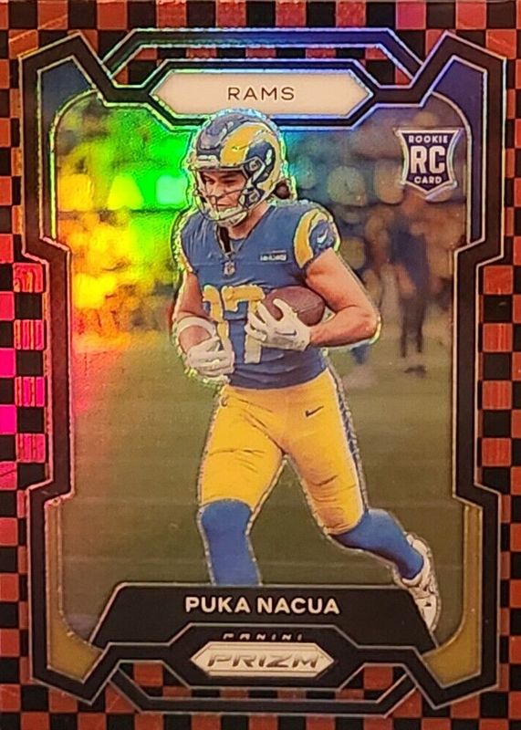 The Puka Nacua 2023 Prizm #357 Black & Red Checker /(SSP) Rookie card in Raw condition has not changed in price in the last 30 days and was last sold for $167.50 .
